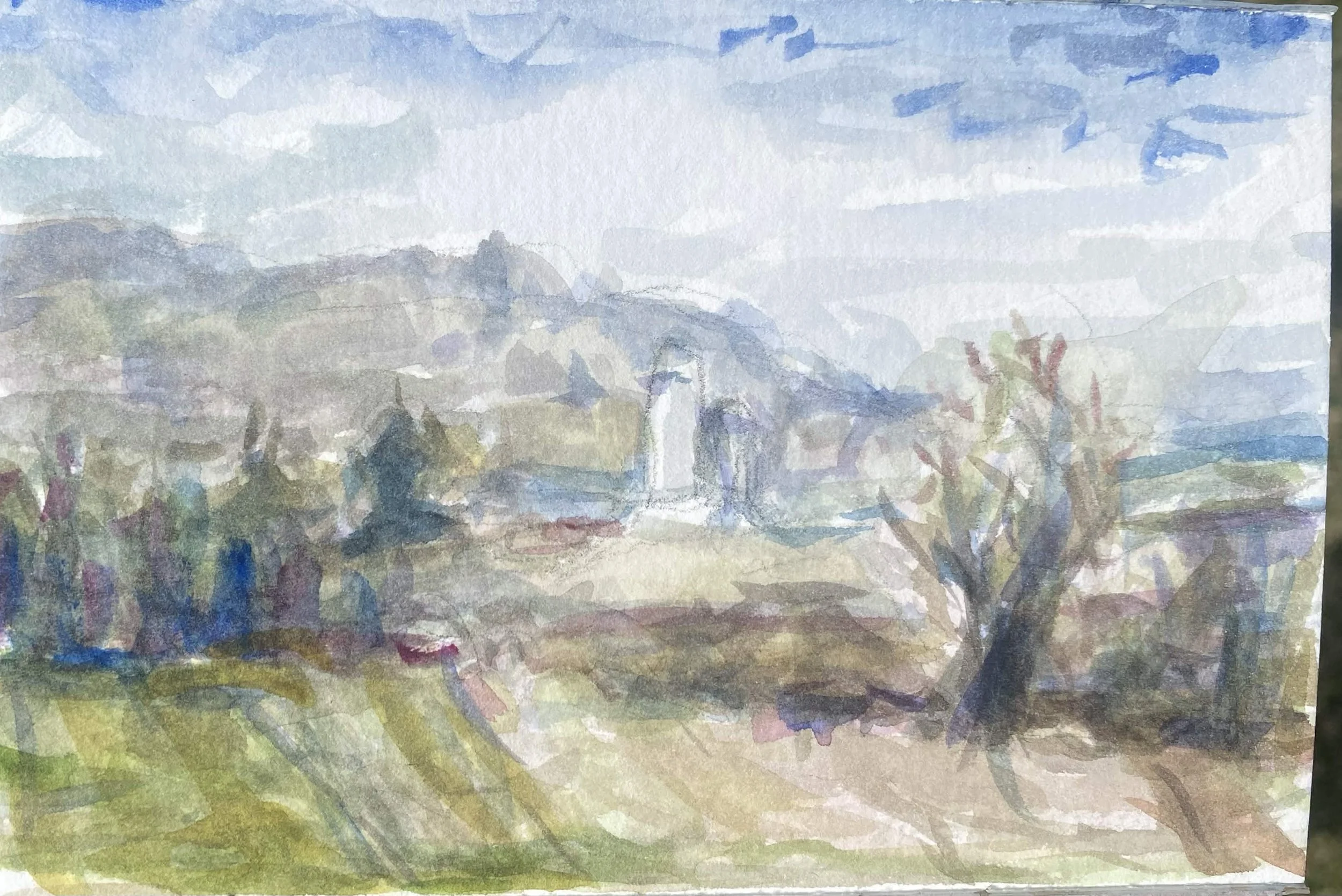 Since January 2025 I have been a proud homeschooler. I think it comes with a lot of freedoms and opportunities that would be inaccessible if I didn’t homeschool. For instance, I’m able to take workshops and classes, travel during weekdays, and take classes anywhere I want. But it also comes with its obvious downsides, like that most of the time I’m stuck at home. As someone who finds my creative inspiration from outdoor observation and travel, homeschooling can be by greatest foe. And so, for my second winter painting and my first winter where my love for landscape painting has been developed, I found I painted less than ever before. As Spring rolls around I’m excited to get outdoors and paint with some green on my palette.